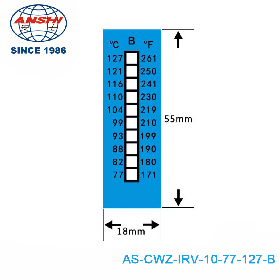 العلامة الحساسة لدرجة الحرارة غير القابلة للإرجاع من المستوى 8 هي مؤشر درجة حرارة متقدم مصمم لتسجيل درجات الحرارة القصوى بشكل دائم بين 37-65 درجة مئوية (99-149 درجة فهرنهايت).هذه العلامات تستخدم آلية غير قابلة للتغيير في اللون لتوفير موثوق بها، سجلات درجة الحرارة طويلة الأمد.