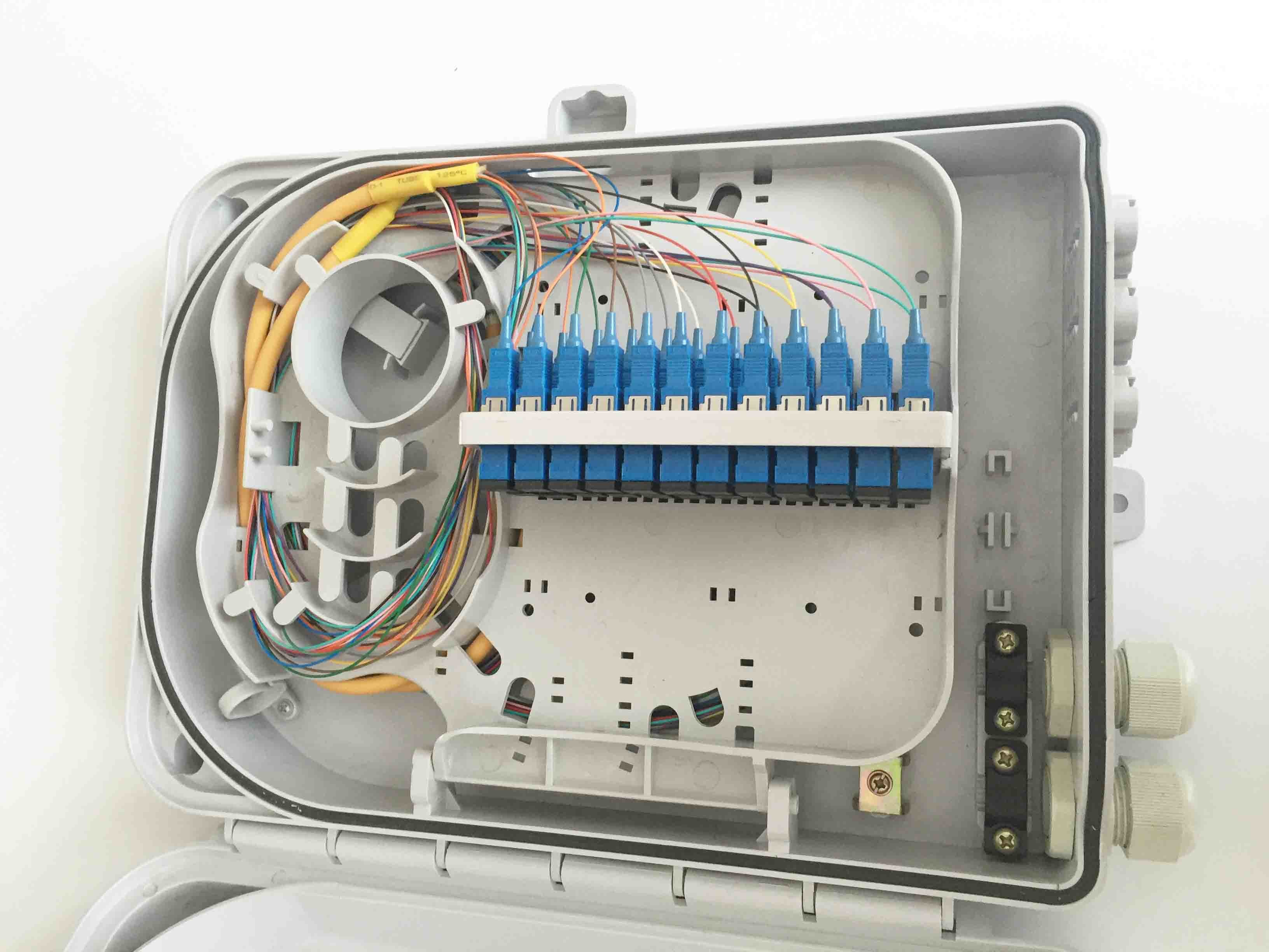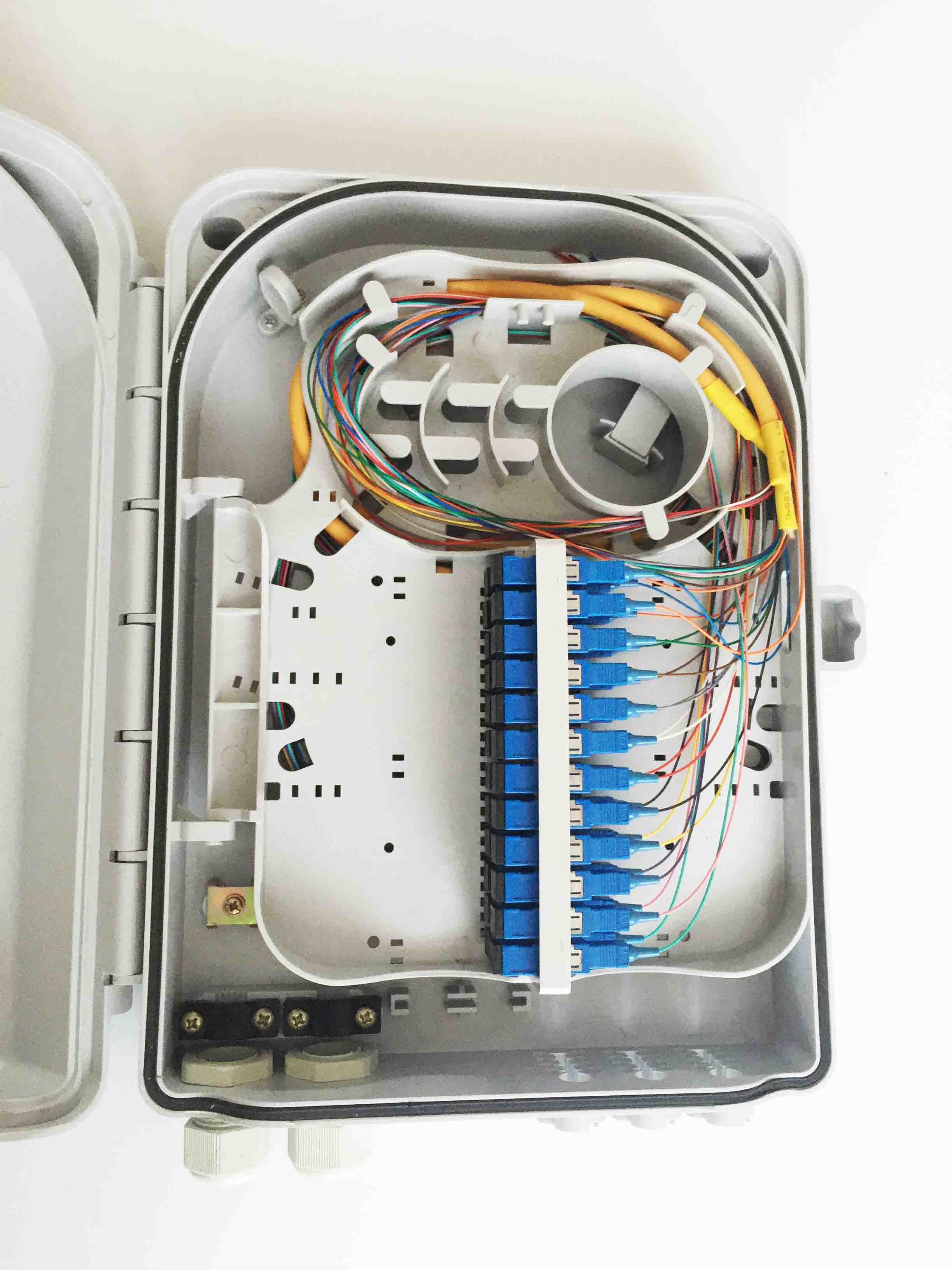 24 النوى فت الألياف البصرية توزيع مربع في الهواء الطلق IP55 جدار جبل نوع والقطب